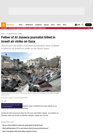Like al-Ghoul, Anas Al-Sharif remained in the north and “became a near-constant presence on television and online, reporting almost every day.” In November 2023, he received threatening calls from the Israeli military, telling him to stop reporting and leave northern Gaza. Weeks later, an Israeli airstrike hit his family home and killed his father. Despite this, Al-Sharif continued to broadcast stories from the Strip and was part of the Reuters team that won a 2024 Pulitzer Prize.