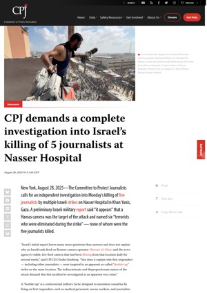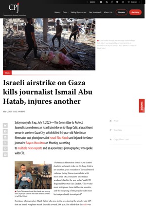 In a statement on the assault, the CPJ described a “double tap” as a “military tactic designed to maximize casualties by firing on first responders, such as medical personnel, rescue workers, and journalists.” Israeli forces repeatedly employed this tactic, as in a June 2025 shelling of a home east of Gaza City.