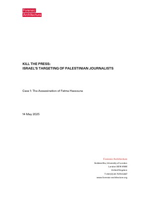 Forensic Architecture investigated the attack and concluded that “[t]he missiles dropped by the Israeli military specifically targeted the Hassouna family’s apartment” on the second floor. “Our analysis indicates that Fatma Hassouna’s home was targeted using precision-guided munitions (PGMs), equipped with guidance and control systems—including GPS and a delay fuse—designed to detonate at [specific coordinates] and floor level.”