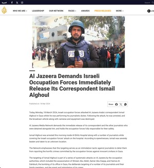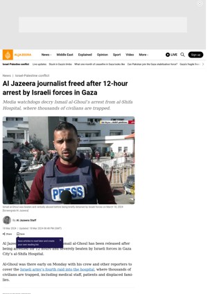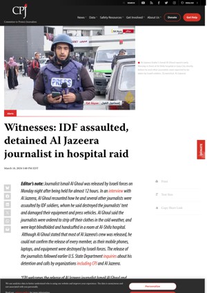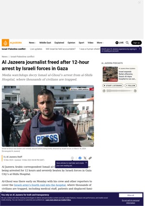 If Israeli forces had any incriminating information about al-Ghoul, yet failed to notice that he was one of the journalists they rounded up, the public demands for his release by the CPJ and Al Jazeera should have alerted them. The widely reported incident was even raised at a U.S. Department of State briefing that day. Asked about the “correspondent [who] was arrested . . . in al-Shifa complex outskirts,” and who “was beaten, stripped, and got his equipment destroyed,” deputy spokesperson Patel said, “We’re aware of those reports and we’ve asked the Government of Israel for more information.” After the IDF assassinated the journalist, CPJ asked “why [al-Ghoul] was released after the [2024] Al-Shifa raid.” The IDF responded by denying that he was ever in custody.