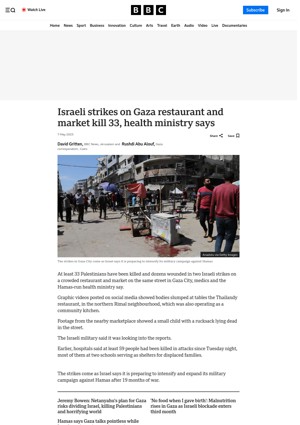 The strike, along with a nearly simultaneous hit on a crowded market about 100 meters away, killed at least 33 Palestinians. Among them was journalist Yahya Sobeih, who hours earlier “had welcomed his newborn daughter into the world.”