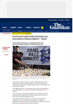 Notably, the reporters the IDF bothered to label as “terrorists” before killing, such as Shabat, Ismail al-Ghoul, and Anas Al-Sharif, were primarily those with larger audiences and international reach.