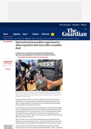 As Palestinian voices were being silenced within Gaza, Israel imposed a blockade on international media, barring independent access. In July 2024, “more than 70 media and civil society organizations,” including the Associated Press, The Guardian, the BBC, Agence France-Presse, and CNN, signed an open letter urging Israeli authorities to “end immediately the restrictions on foreign media entering Gaza” — to no avail. The blockade persisted for more than two years, including the 58-day “ceasefire” from January to March 2025, and remains in place as of this writing.