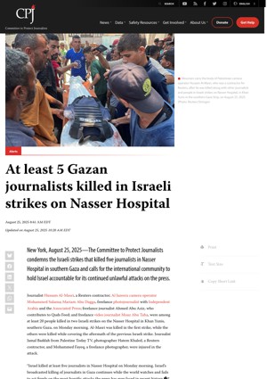 Even for those who consider the genocidal campaign on Gaza a “war,” in which active Palestinian combatants are treated as legitimate targets — and who, despite the murders detailed above, regard Israeli authorities as credible sources — no evidence was offered that these journalists ever engaged in combat of any kind.