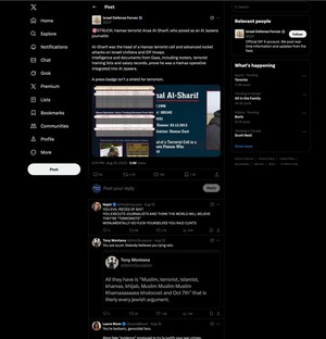 On July 23, IDF spokesperson Avichay Adraee accused Al-Sharif of “starring” in a “fabricated drama” made with “support from the terrorist Hamas.” The next day, he claimed the journalist was “part of Hamas’s military machine” and conducting “a personal media campaign that may aim to elevate his organizational standing in the Qassam Brigades.”